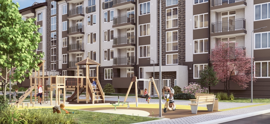 Комфортная территория для взрослых и детей. На территории комплекса предусмотрено всё для активной и спокойной жизни: детская и спортивная площадки, просторные зоны отдыха, велодорожка и велопарковка. Высажены молодые деревья, декоративные кустарники, обустроены цветники и установлено декоративное освещение.